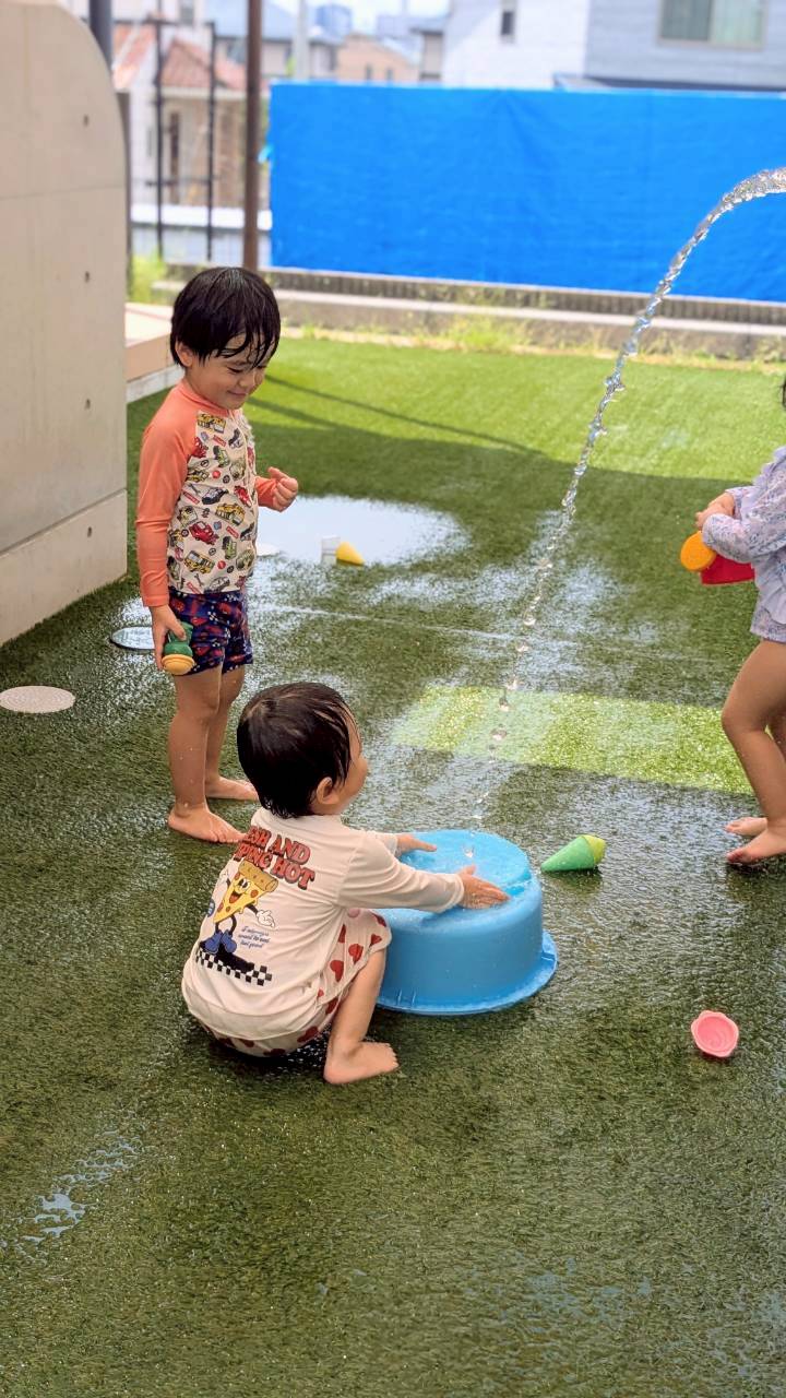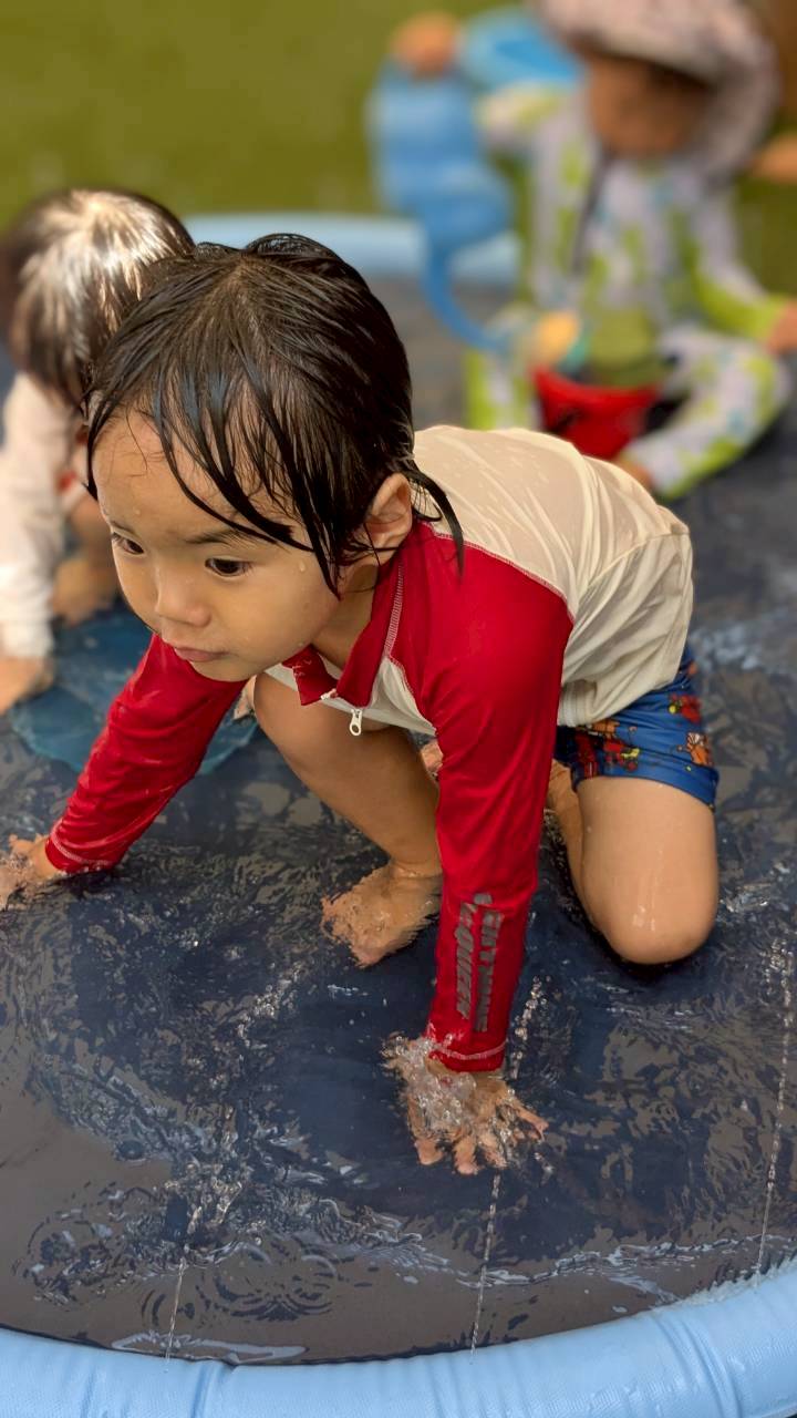 今日は最後の水遊びの日でした🥹自分で体操服を脱ぐ事を頑張り、畳んで椅子の上に置き、水着に自分で着替えれるようになった子もいて、成長を感じました🥹❤️『最後の水遊び楽しむぞー✊❣️』と言うと
