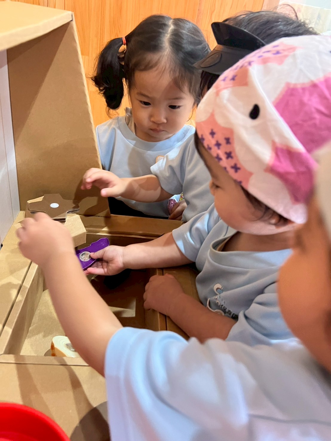 最後はキッチンを出してままごと遊び🍳お皿に盛りつけたり、友だちとやりとりをしたりしながら、それぞれが思い思いに楽しんでいました💕
