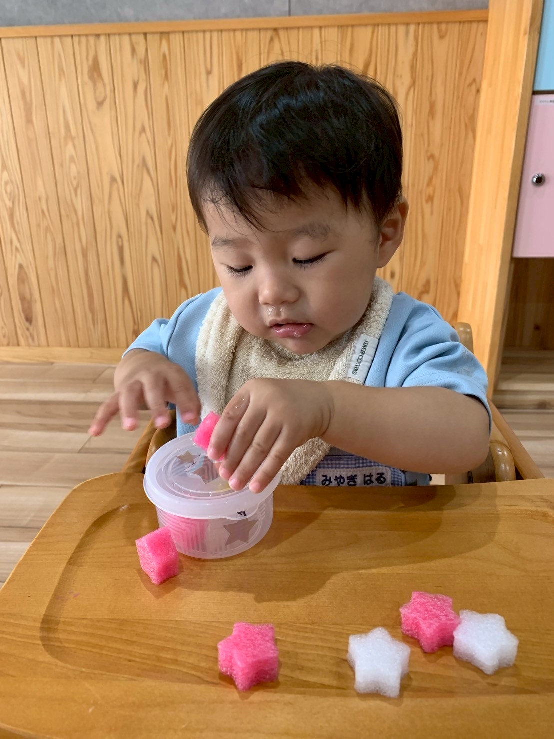 がんばって摘み付けることが出来ると嬉しそうに保育者の方を見てニコッとしていましたよ☺️