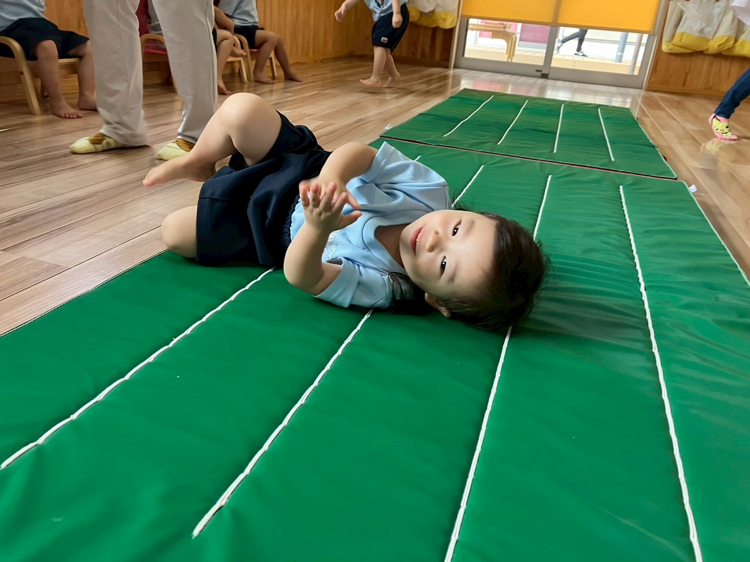 今日はマットと跳び箱で遊びました😊✨マットでどんぐりになってコロコロ転がったり、うさぎ跳びをしたり、前転にも挑戦😆