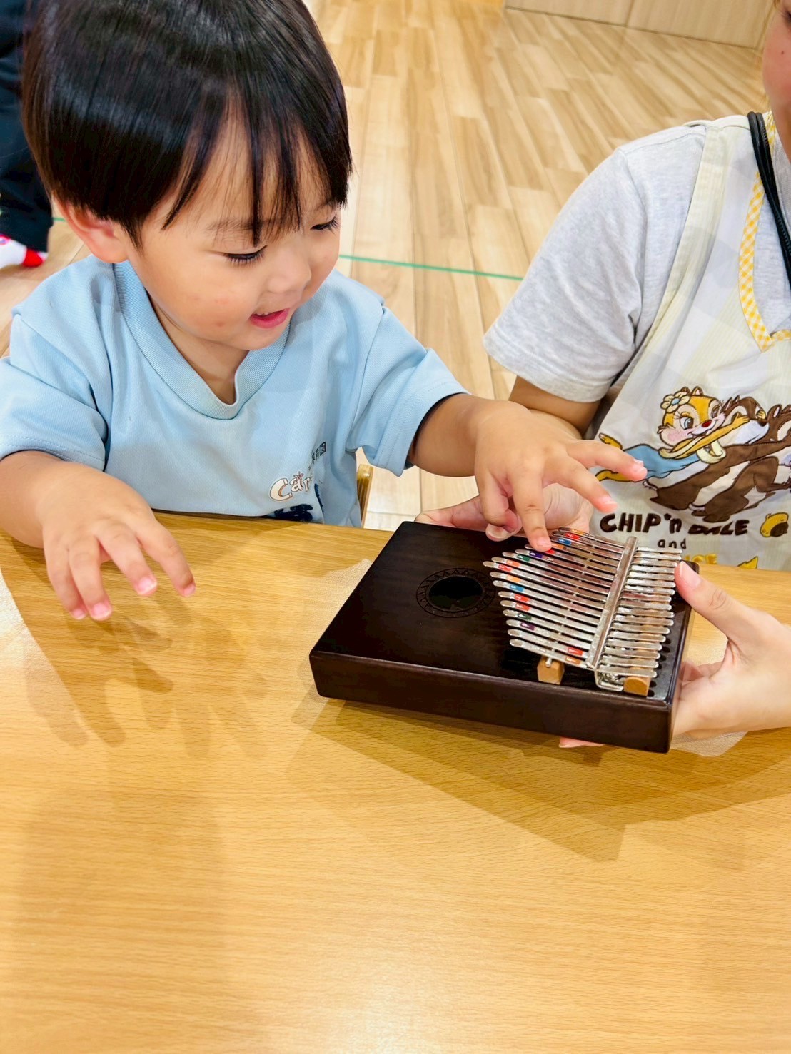 今日は新しい楽器「カリンバ」に触れ、音色を聴いたりならしてみたりしました🎶 初めての音に耳を傾ける姿がとても印象的でした✨
