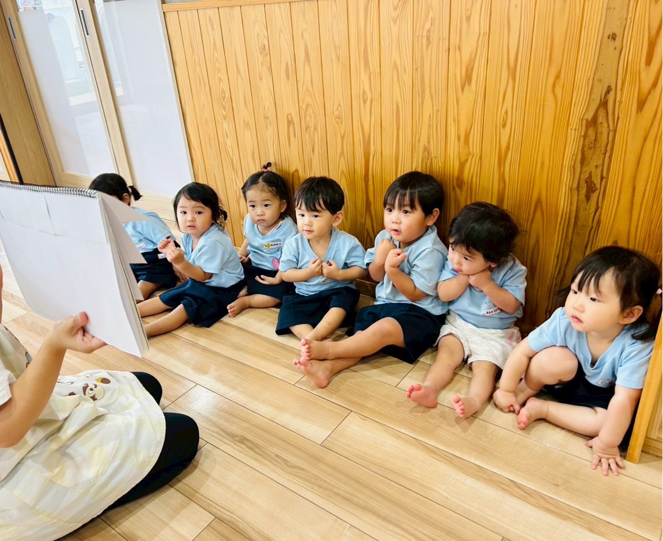 その後は、お家の方の膝に座って「バスごっこ」の歌に合わせてふれあい遊びをして、ぎゅっと抱いてもらい、嬉しそうなお顔が見れました🥰