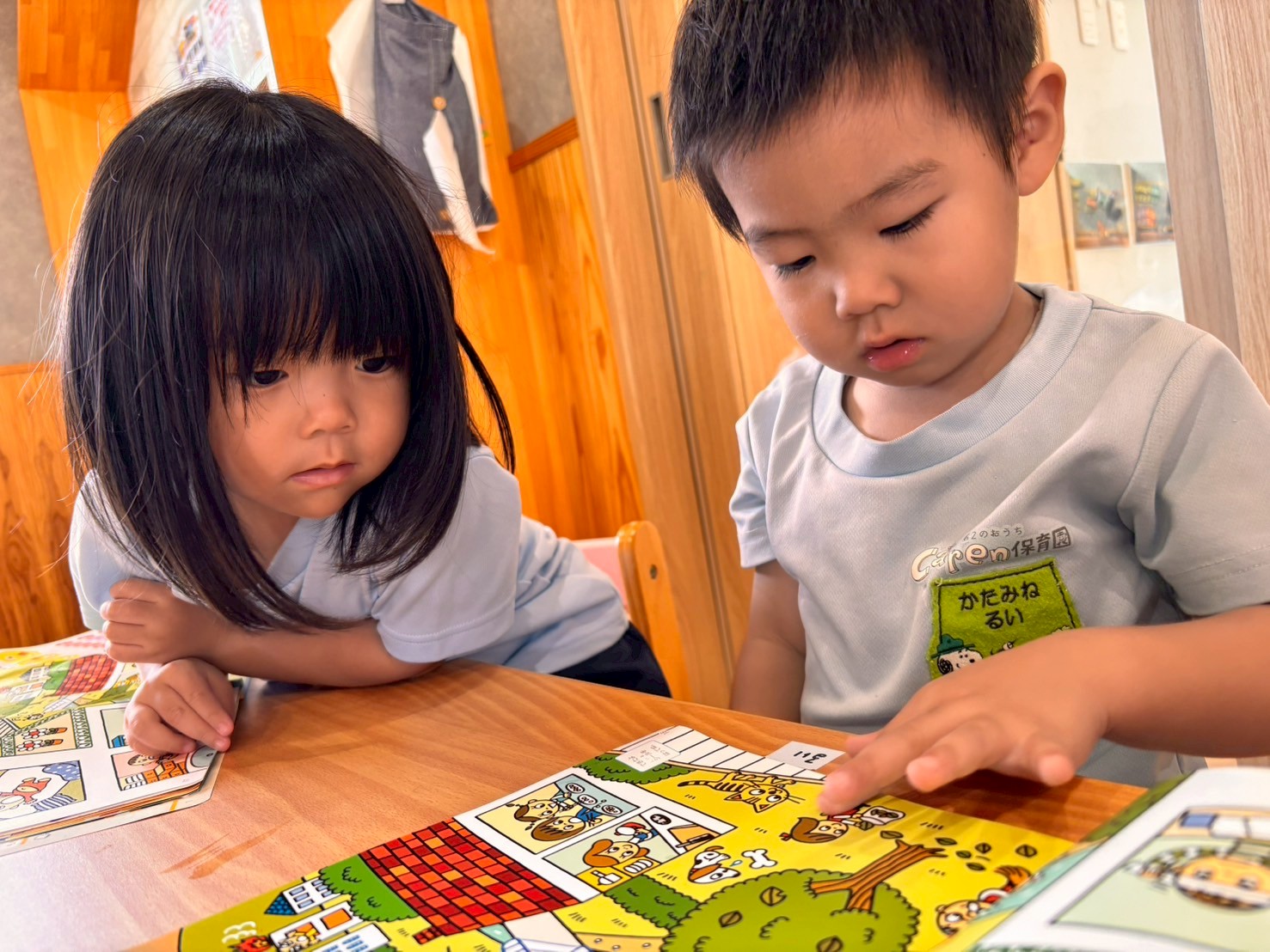 右と左が同じ動物になるように見比べてシール貼るのに苦戦する子もいましたが、1つ1つ確認しながらだとわかっていました☺️✨