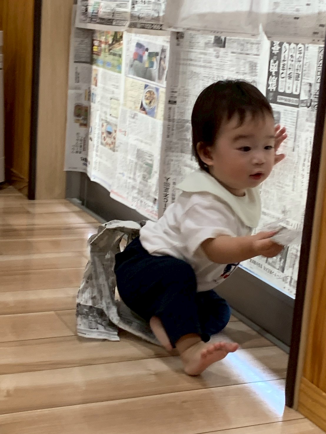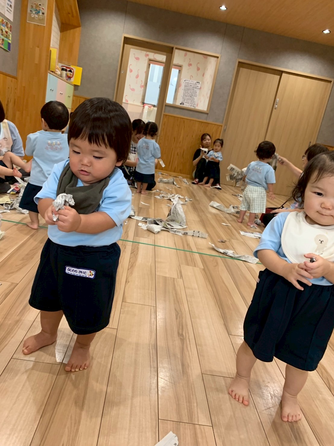 そのあとはひよこ組さんと一緒に新聞紙遊びをしました📰 びりびりちぎったり、丸めてボールにしたりと夢中になって楽しんでいましたよ😊ぱんだ組