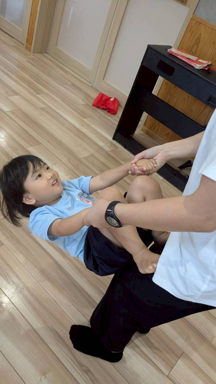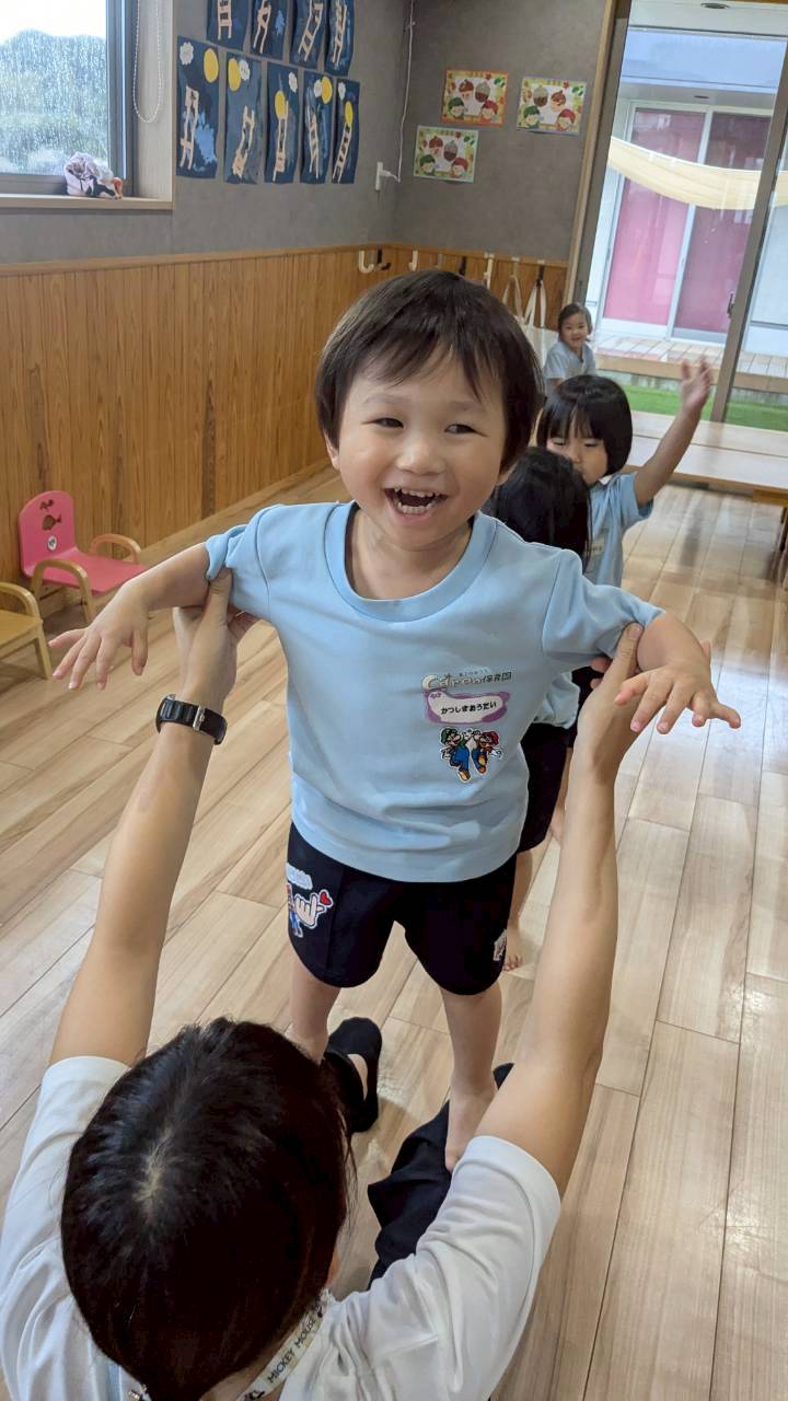 保育者の膝に乗りバランスをとったり、手を繋いでクルリンパをしました🥰