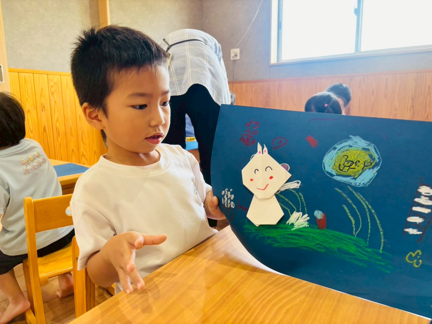 折り紙製作でうさぎ🐇を折っていきました🥰