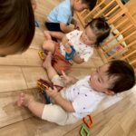 今日はぱんだ組🐼さんと一緒に朝おやつを食べ、朝の会も一緒にしましたよ😊お兄さんお姉さんたちのかっこいい姿を見て緊張気味のひよこ🐥さんたち❣️歌をうたったり絵本を読んでもらいましたよ😄