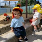 それから靴を履いて園庭に出て滑り台やボール、砂場で遊びました😀ぱんだ組🐼さんたちが作る砂のお山を見たり、ホースのお水を浴びて楽しみました💓