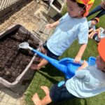 背中に書いてる文字を想像して次に繋げる、を苦戦しながらも繋げてました☺️みんなでカブと人参の種まきもしましたよ🌱