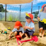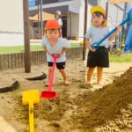 砂場ではお友達へ「一緒に遊ぼう❣️」と声を掛けたり、「何作ってるの?」「ご飯!ゴマのご飯😊」など会話を楽しむ姿がたくさん見られましたよ☺️