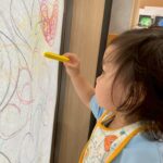 その後にりす組🐿️のお部屋で壁に貼った紙にお絵描きをして楽しみました😄好きな色のクレヨンを選んで描いていましたよ🖍️りす組さんが描いたアンパンマンを見つけて「あ〜んぱん!」と嬉しそうに指差ししていました💓