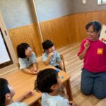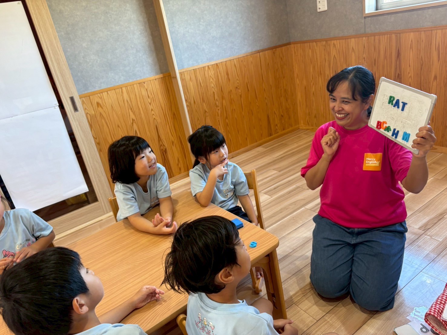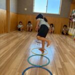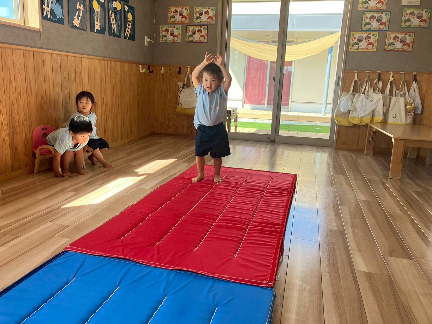 パズルを使った復習方法に大喜びでパズルをはめ、英語のリピートも楽しみましたよ🥰名前を呼ばれた時に「I’m here!」とお返事をする子ども達の発音の良さに私も講師も驚いていました🥺次にマット運動遊びをして、マットの上をコロコロ転がったり、兎跳びをしたり、前転の練習をしました✨以前より前転が上達し、一人で出来る子もいましたよ❤️👏最後にリトミックがありました😊