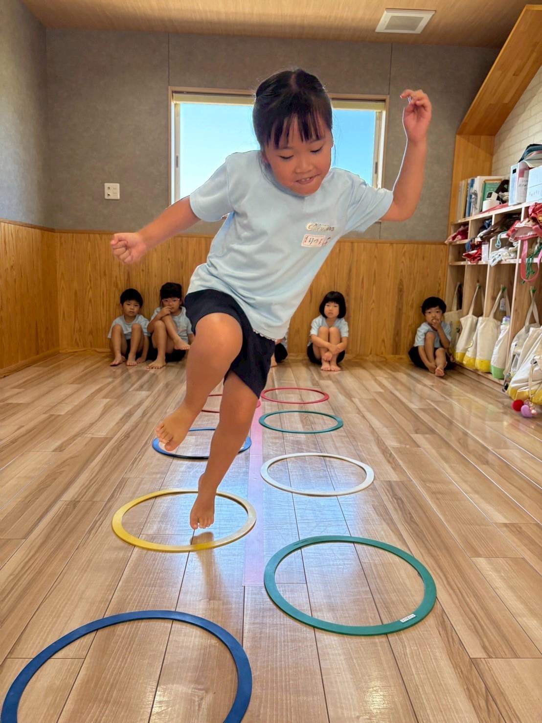 その後運動遊びをして、テープを跨いでジャンプしたりケンケンを利き足ではない足で挑戦してみました🦶【くりえいと園の今日の給食です】