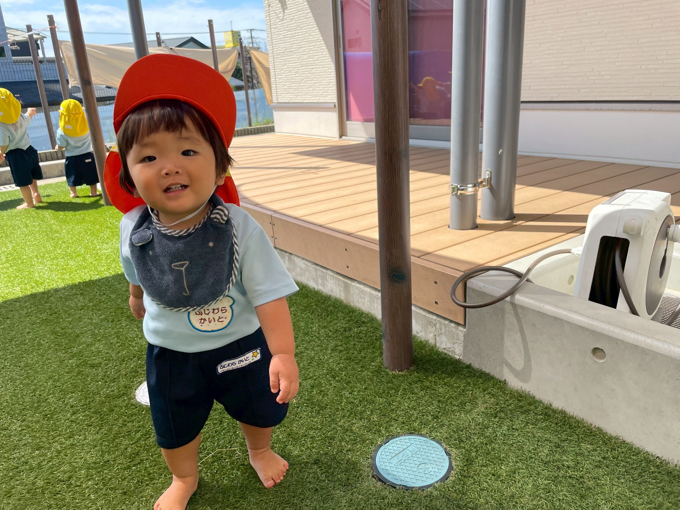 かけっこをしたり、園庭の中の涼しい場所や落ち葉を見つけたりしながら、のびのびと過ごしました🥰りす🐿