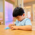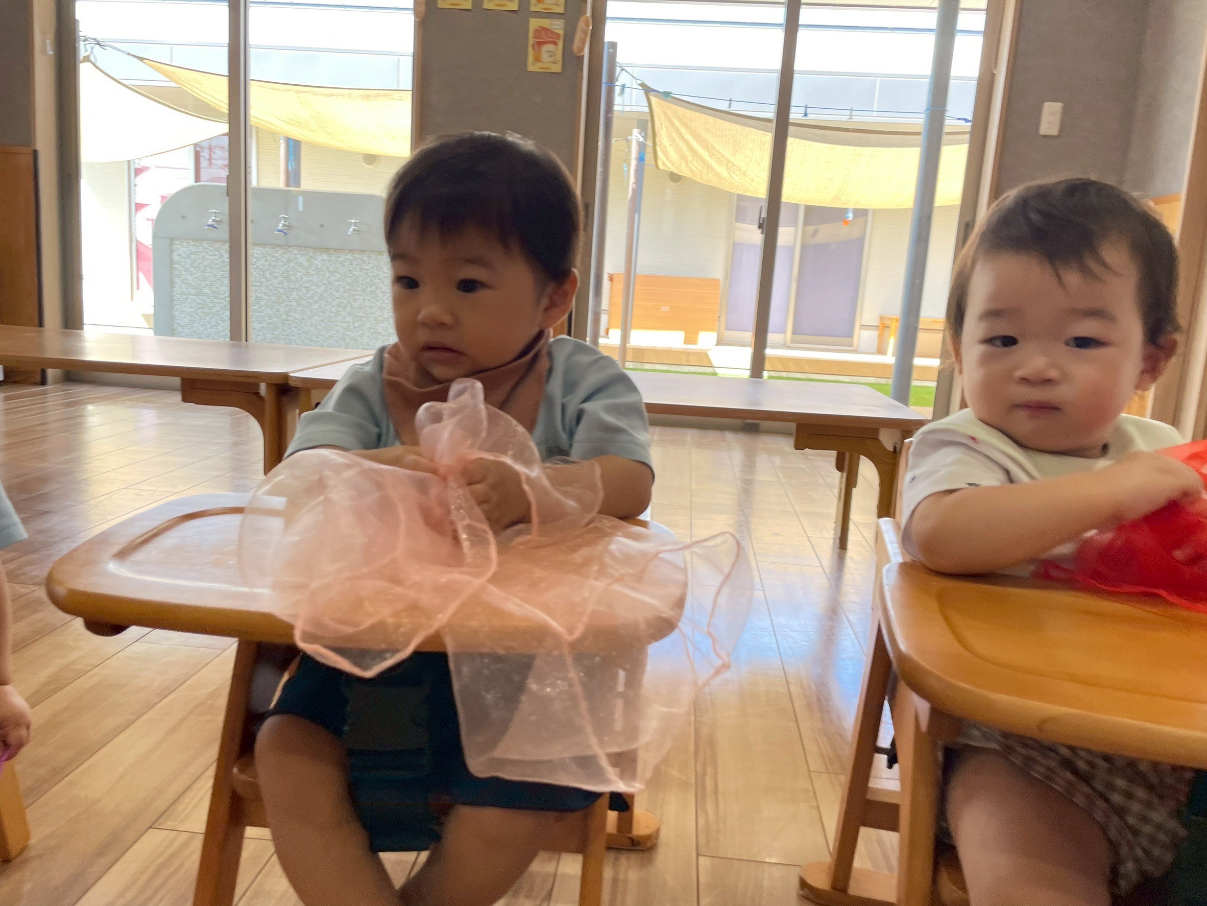 そのあとはスカーフを使ってくしゃくしゃに丸めてからとぱぁっと広げるとお花のように広がるスカーフを見て笑顔いっぱいで楽しむ姿が見られましたよ🥰