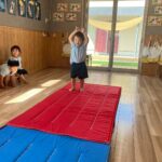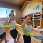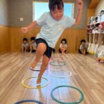 その後運動遊びをして、テープを跨いでジャンプしたりケンケンを利き足ではない足で挑戦してみました🦶