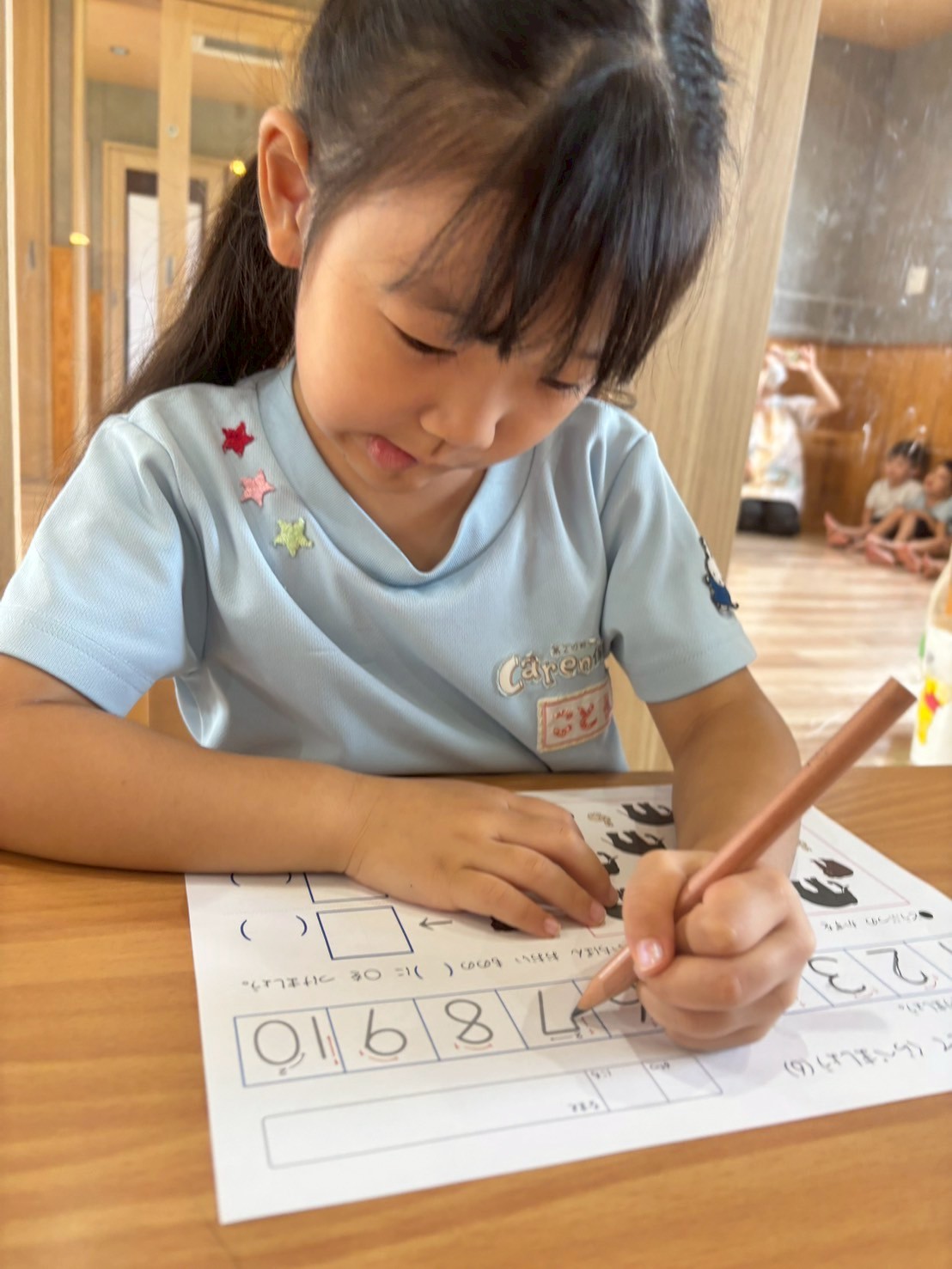 こあらさんはプリントの数字をなぞり、1〜10まで書きました😊✨