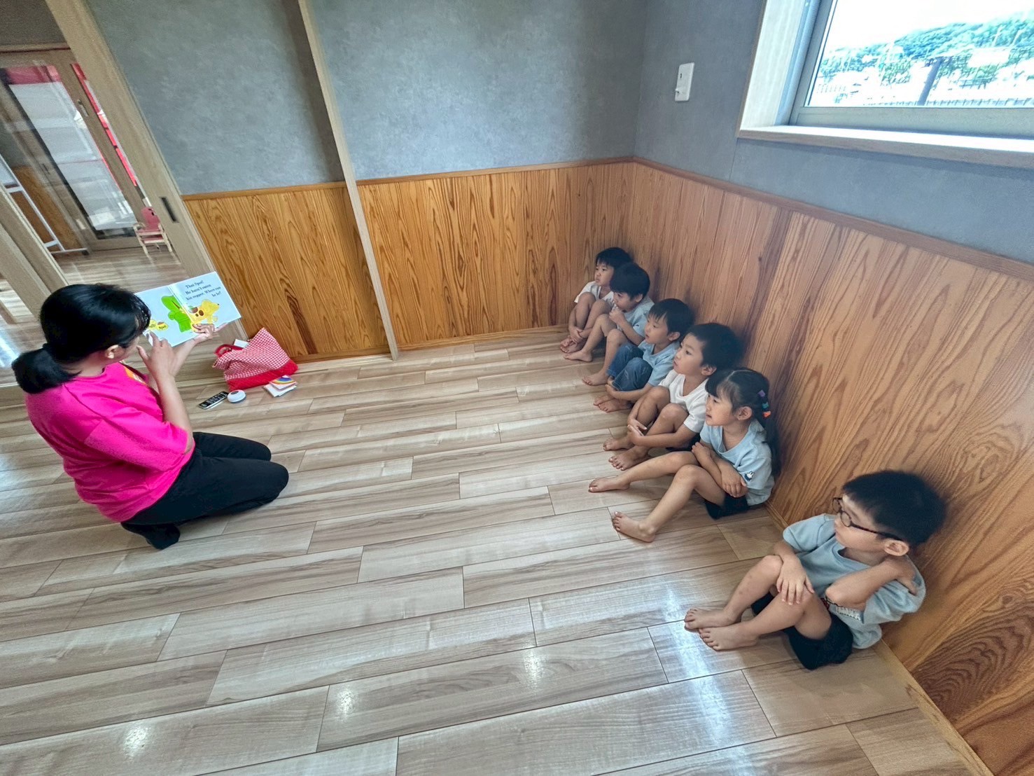 「子犬はどこに行ったでしょう」の絵本を読んでもらいました📖みんな目をキラキラさせて真剣な眼差しで子犬を探していました🐶✨