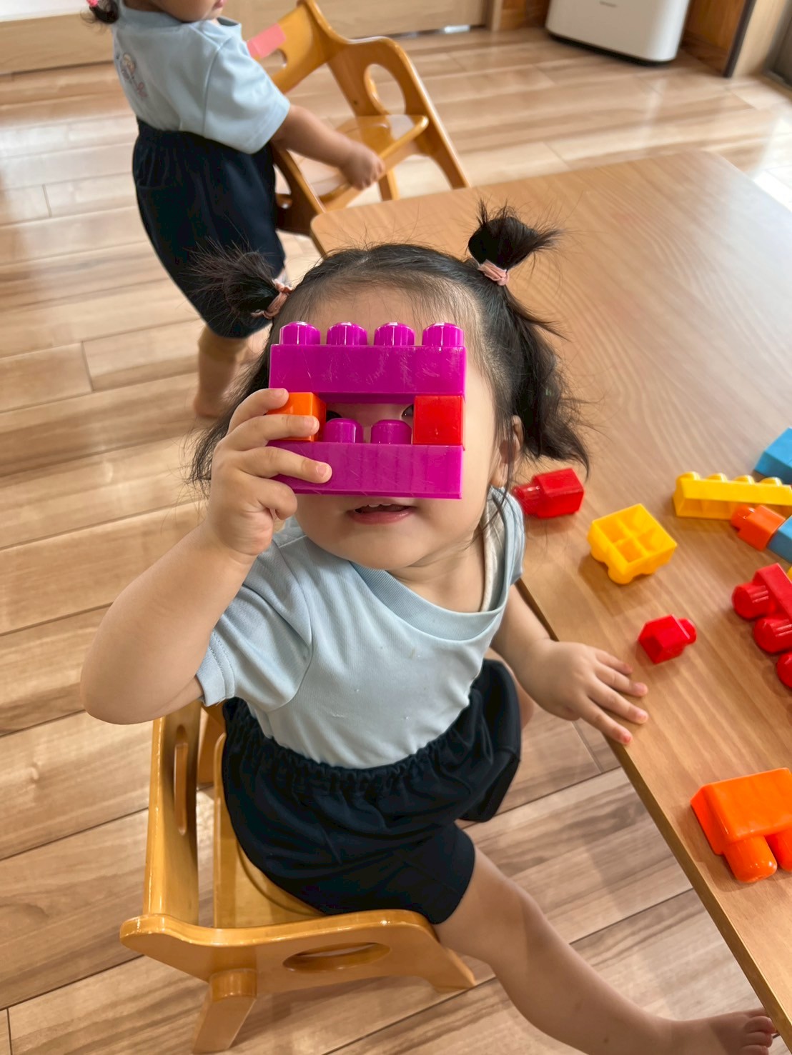 今日の机上遊びはブロック遊びからスタート✨