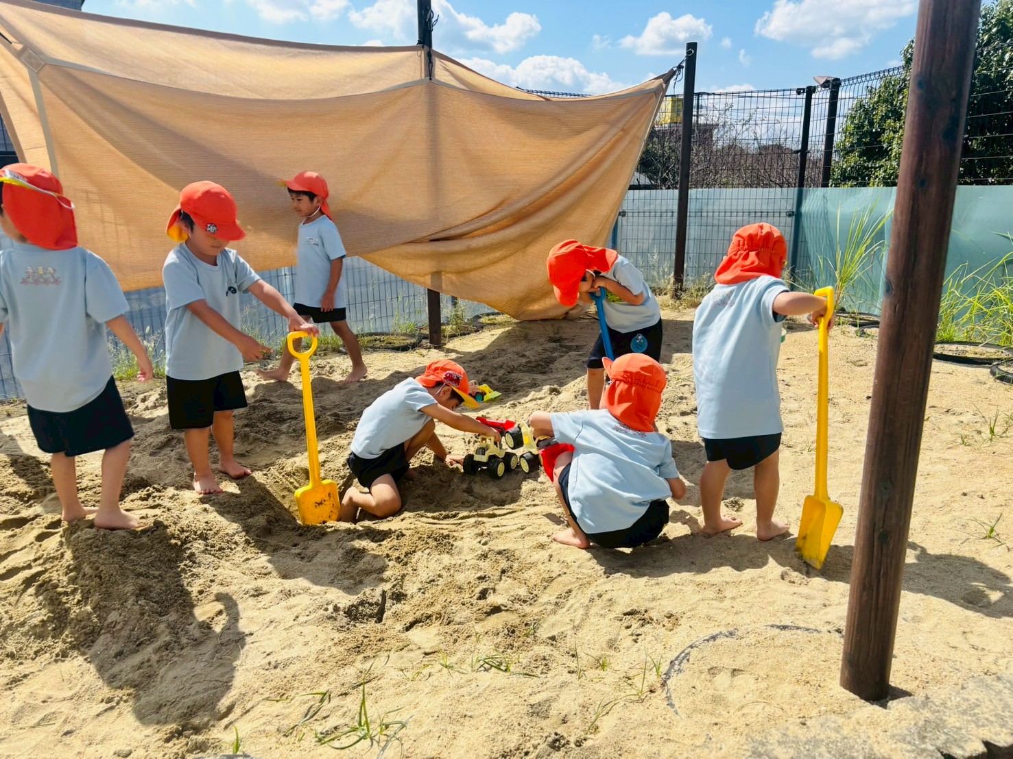 その後は給食を園庭で食べました(ごはん)いつもとは違う景色に食欲も増し、モリモリと食べていましたよ‼️