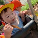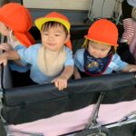 今日はりす組🐿️さんとぱんだ組🐼さんと一緒にカートに乗ってふれあい公園まで行きましたよ❣️車やトンボなど指差ししながら景色を楽しみながらいきました😊