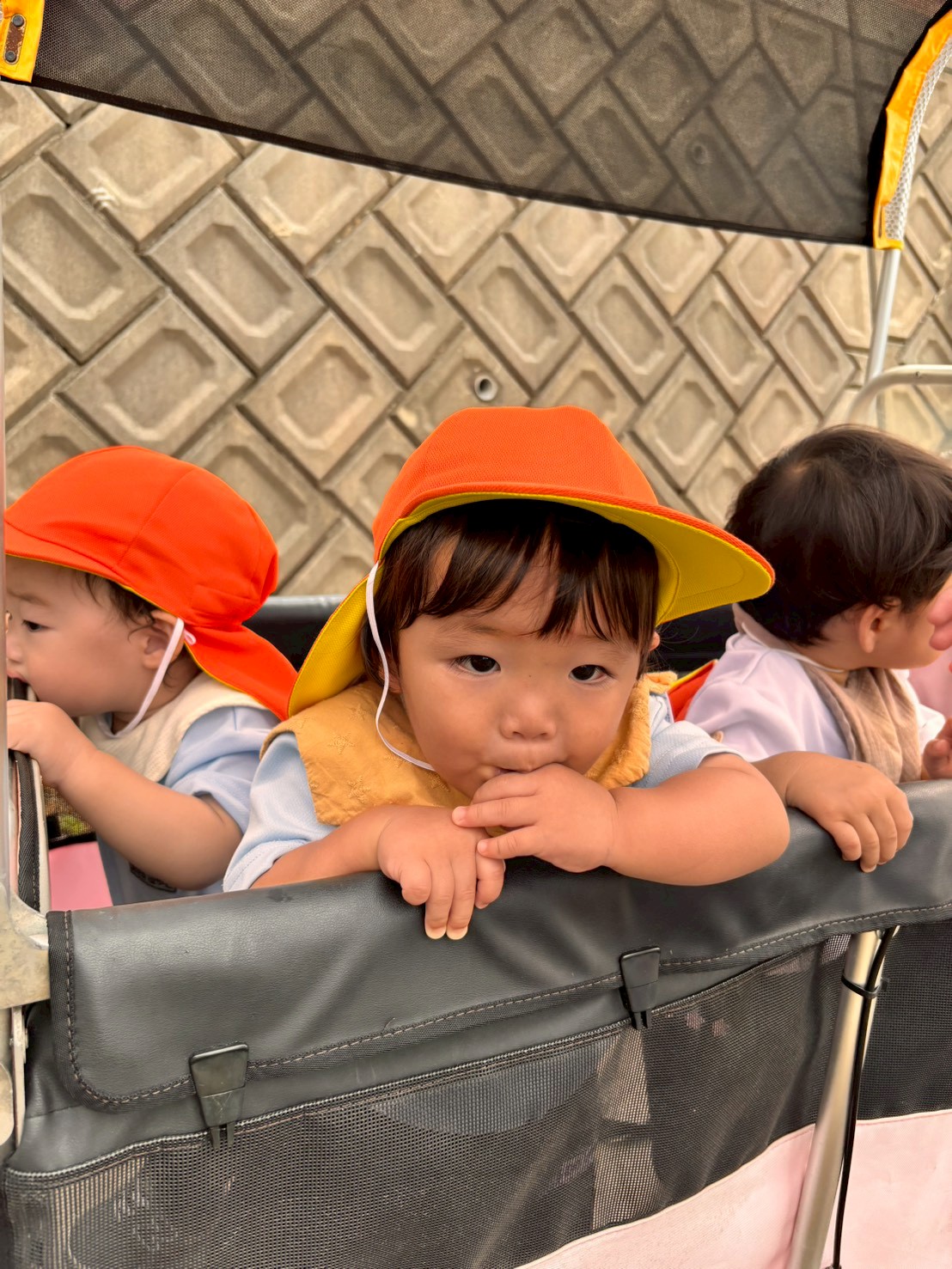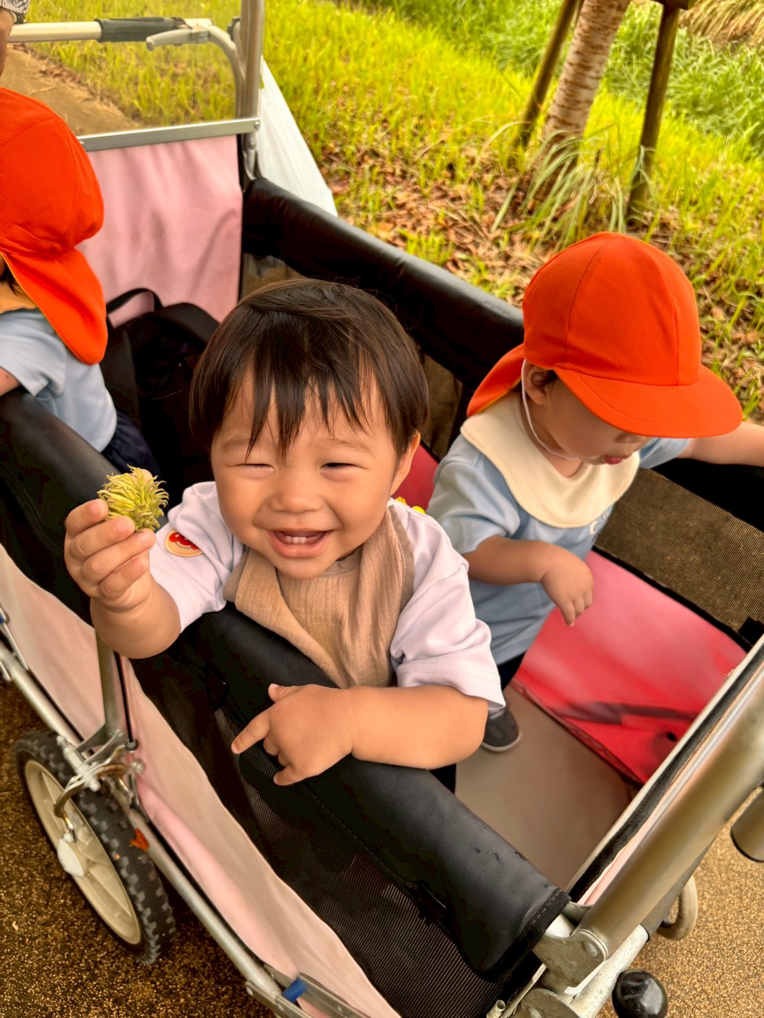 今日はりすぐみ🐿️ぱんだぐみ🐼と一緒にてくてくロードへカートに乗って散歩に行きました🎶