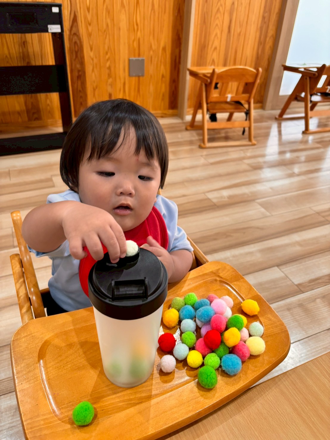 今日はポットン落としをしました✌️集中してひとつずつ丁寧に入れてましたよ☺️💕