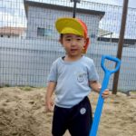 今日は最初に雨が降る前に☂️園庭に行きました。一昨日の大雨で湿っていた砂がちょうど遊びやすく色々なカップを使ってアイス🍨やケーキ作ったり工事👷遊びをしてたり、雨☂️でたまった雨水を『冷たーい』と嬉しそうに触ってはプチ水遊びに満足していたお友達でした。