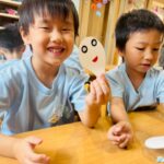 待っている間にポピーをしたりハンドベル🛎️をしています。ハンドベルでは2人や3人で鳴らす音が綺麗になりました💖Caren保育園くりえいと