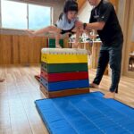 きりんさんは跳び箱4段を跳ぶ練習をしています✨開脚跳びに挑戦しましたよ♡