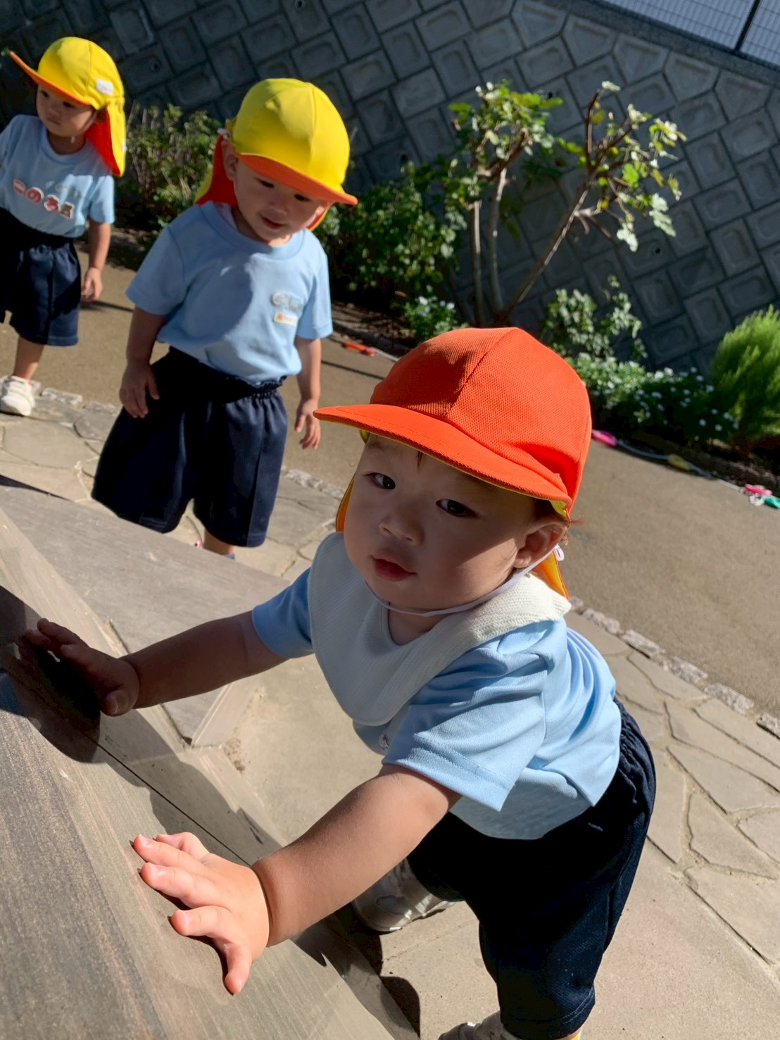 秋晴れの気持ちの良いお天気で、気分もウキウキのひよこさんたち❣️園庭から「おーい」とぱんだ組さんに声をかけられて、嬉しそうにひよこのお友だちも手を振っていましたよ😄