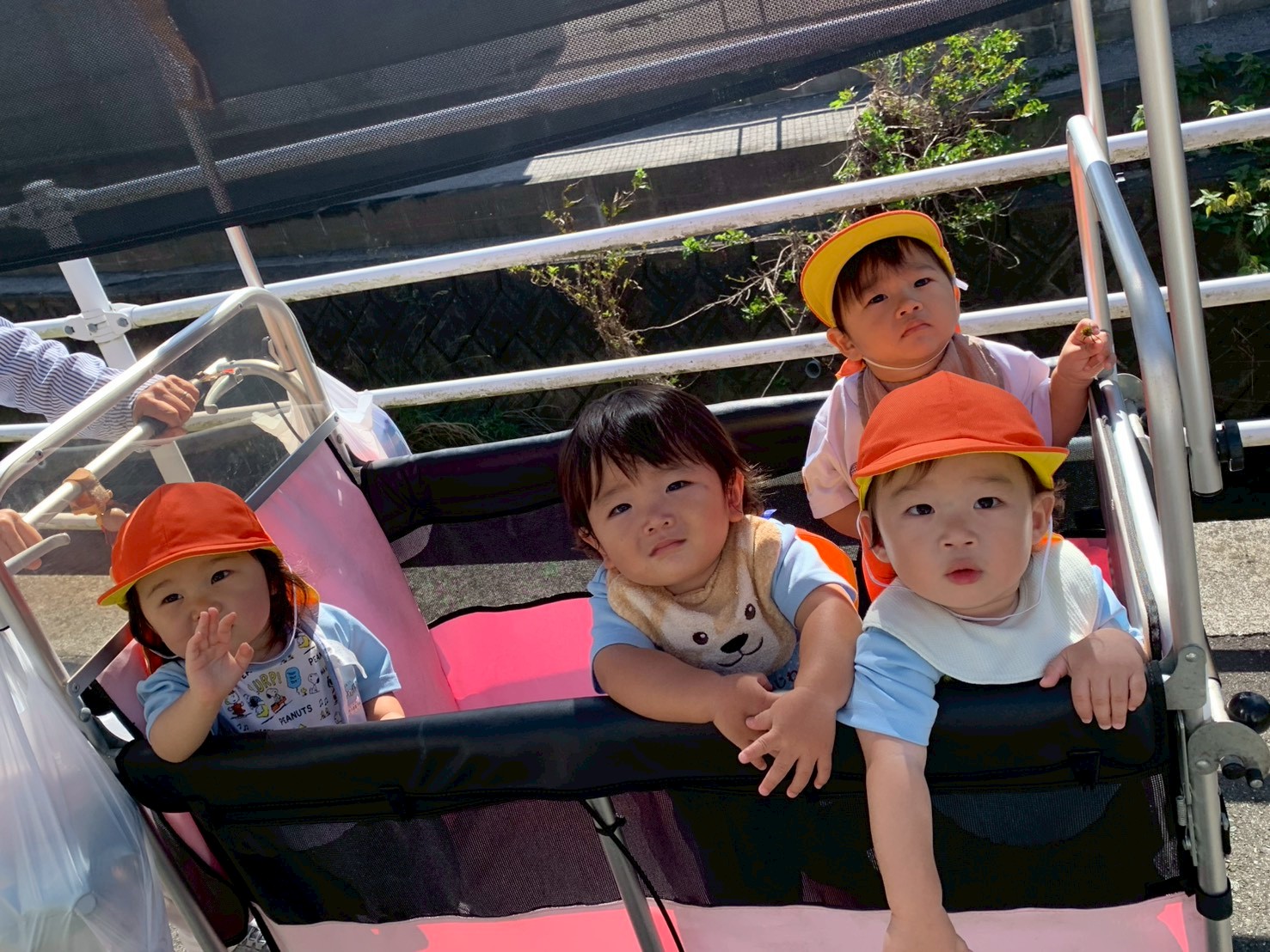 今日はりす組🐿️さんと一緒にてくてくロードへカートに乗ってお散歩に行きましたよ😊
