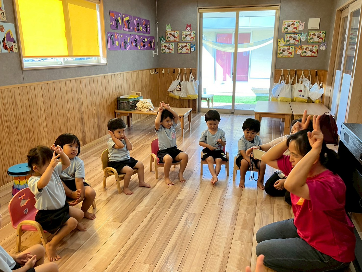 うさぎ、こあら組は、ひらがなカードで言葉探しをして楽しみ、「〇がつく言葉」探しでは、何度も手をあげて知っている単語を発表してくれるお友達もいましたよ🤭