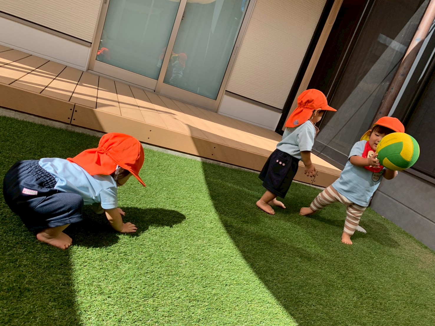 その後、園庭に出てボール遊びや散策をして元気いっぱいのひよこ🐥さんでした😆