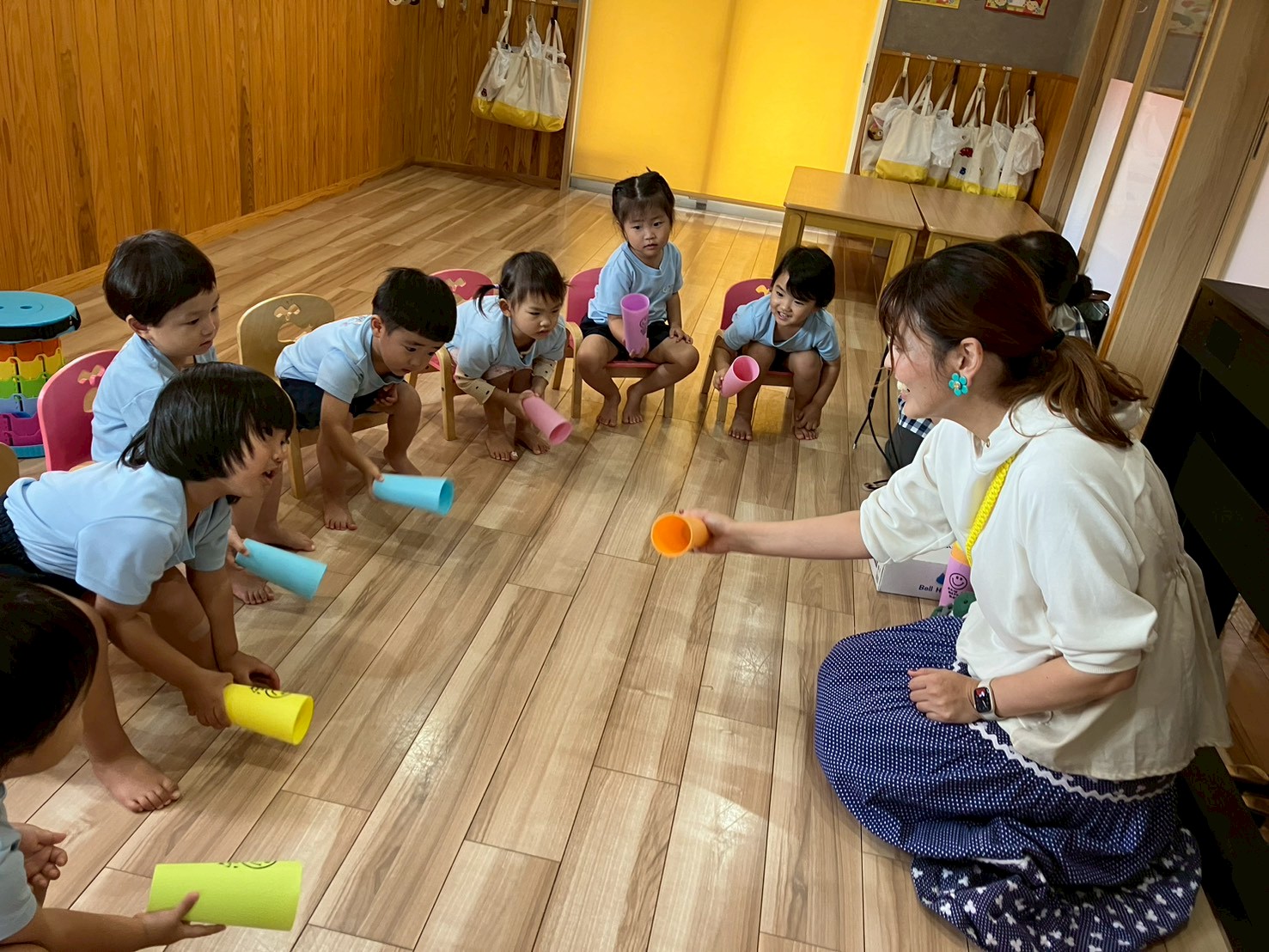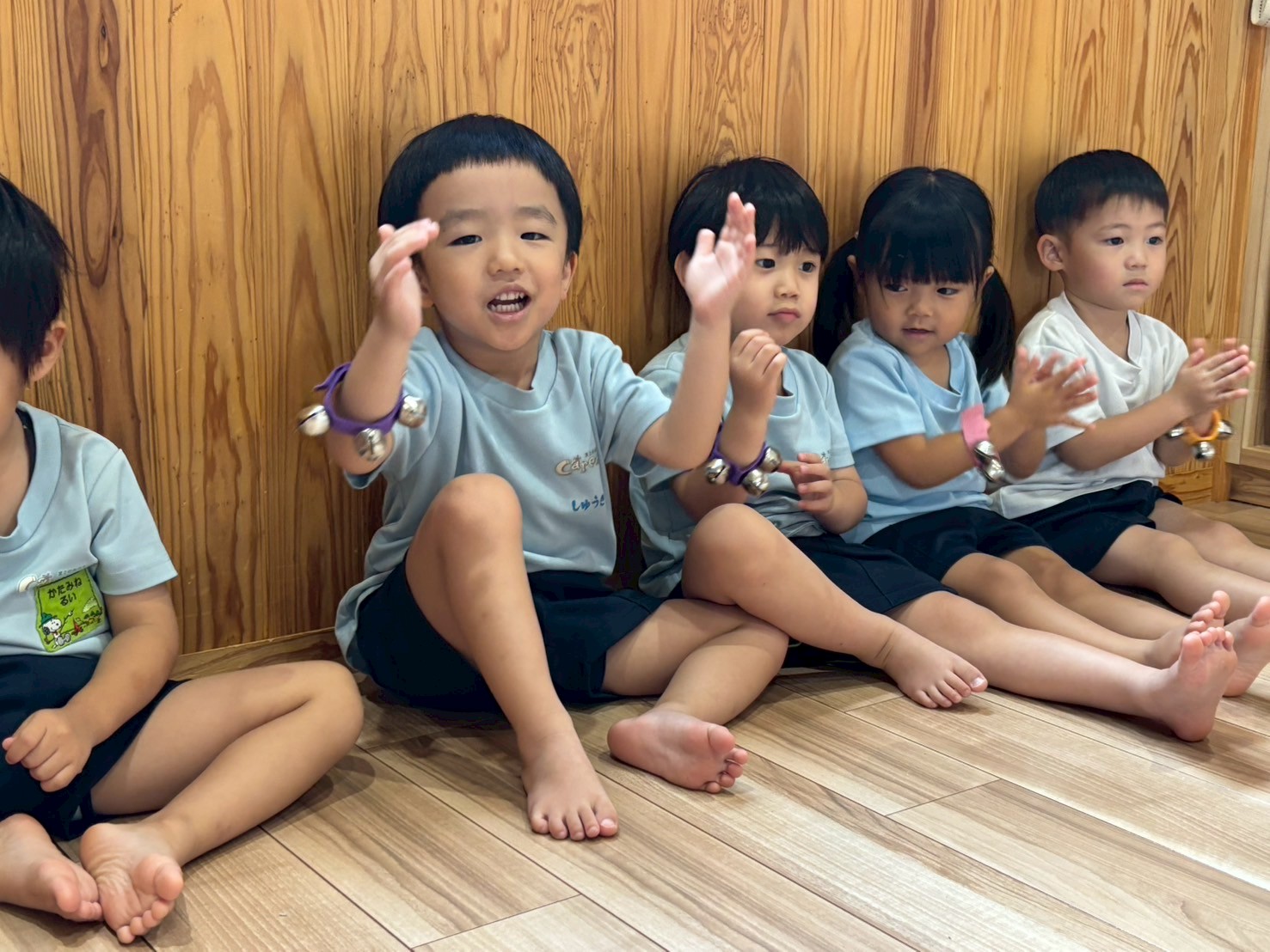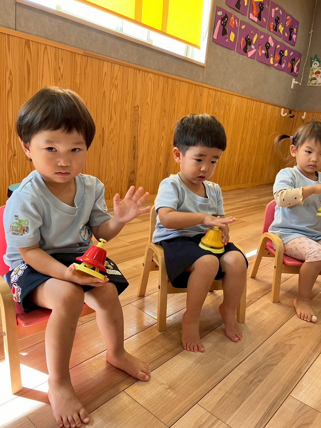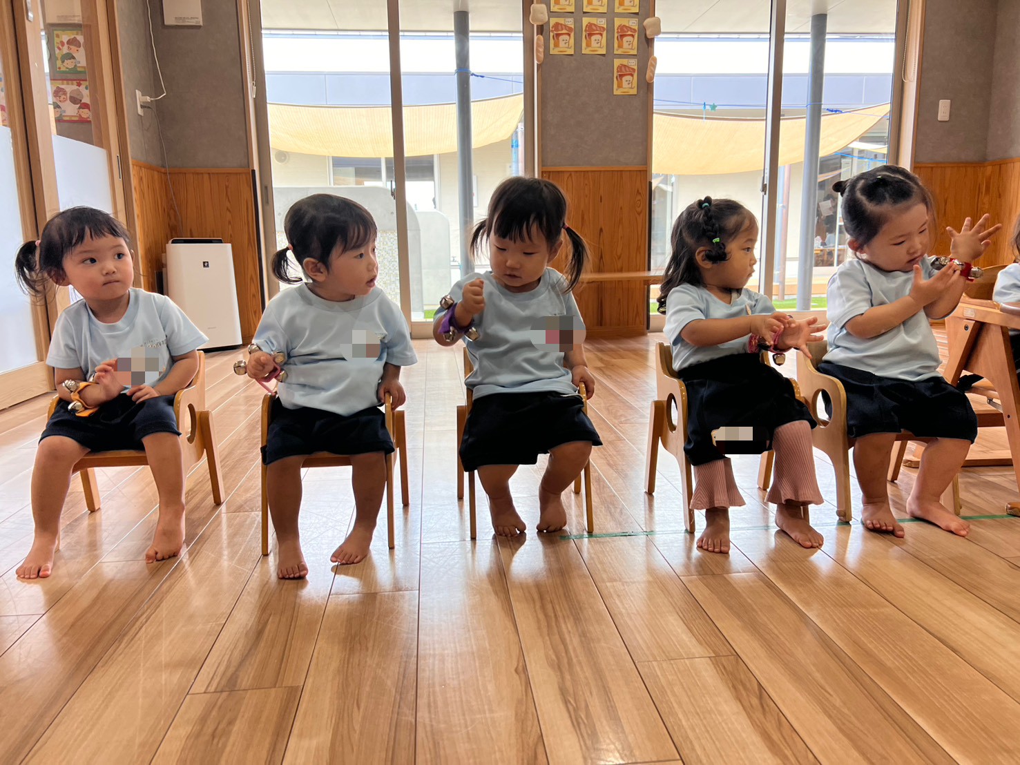 音楽に合わせて動かしたり手をを叩いたりして音を出し楽しみましたよ🫶