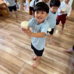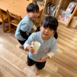 うさぎ組は新聞紙と紙コップでけん玉を作りましたよ🫶🏻完成したけん玉で玉が紙コップに入ると喜ぶ姿が見られました🤭💓
