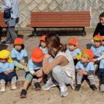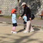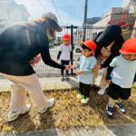公園ではまず、不審者を想定した避難訓練に参加。突然声をかけてきたり、お菓子をちらつかせる不審者に対して、保育者が間に入り安全を確保しました。子どもたちは少し驚きながらも、最後に「いかのおすし」のお約束を確認しました。訓練の中でお菓子を受け取ってしまう子もいましたが、保育者と一緒に振り返りを行い、改めて「知らない人からお菓子はもらわない」というルールを確認しました✨