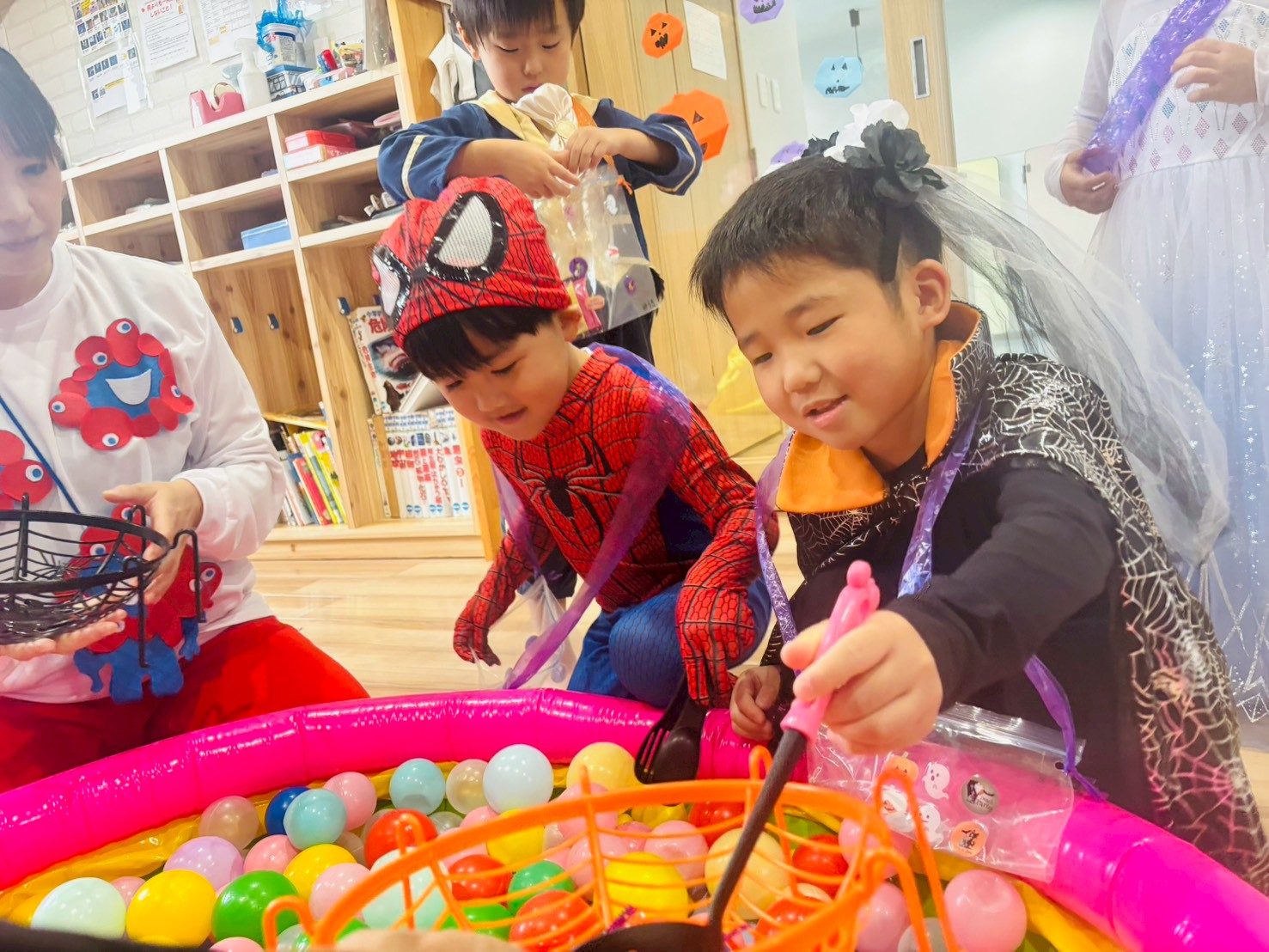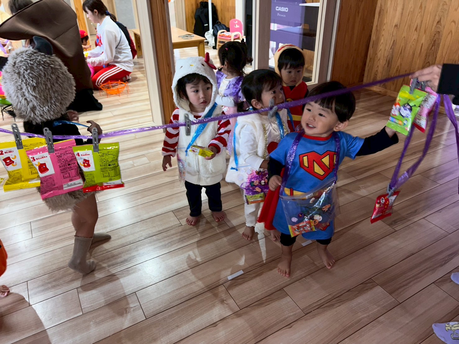 それからお部屋を移動して、お菓子掴みやお菓子取り、オバケとタッチしてお菓子をもらって、みんな大満足の笑顔でしたよ😄