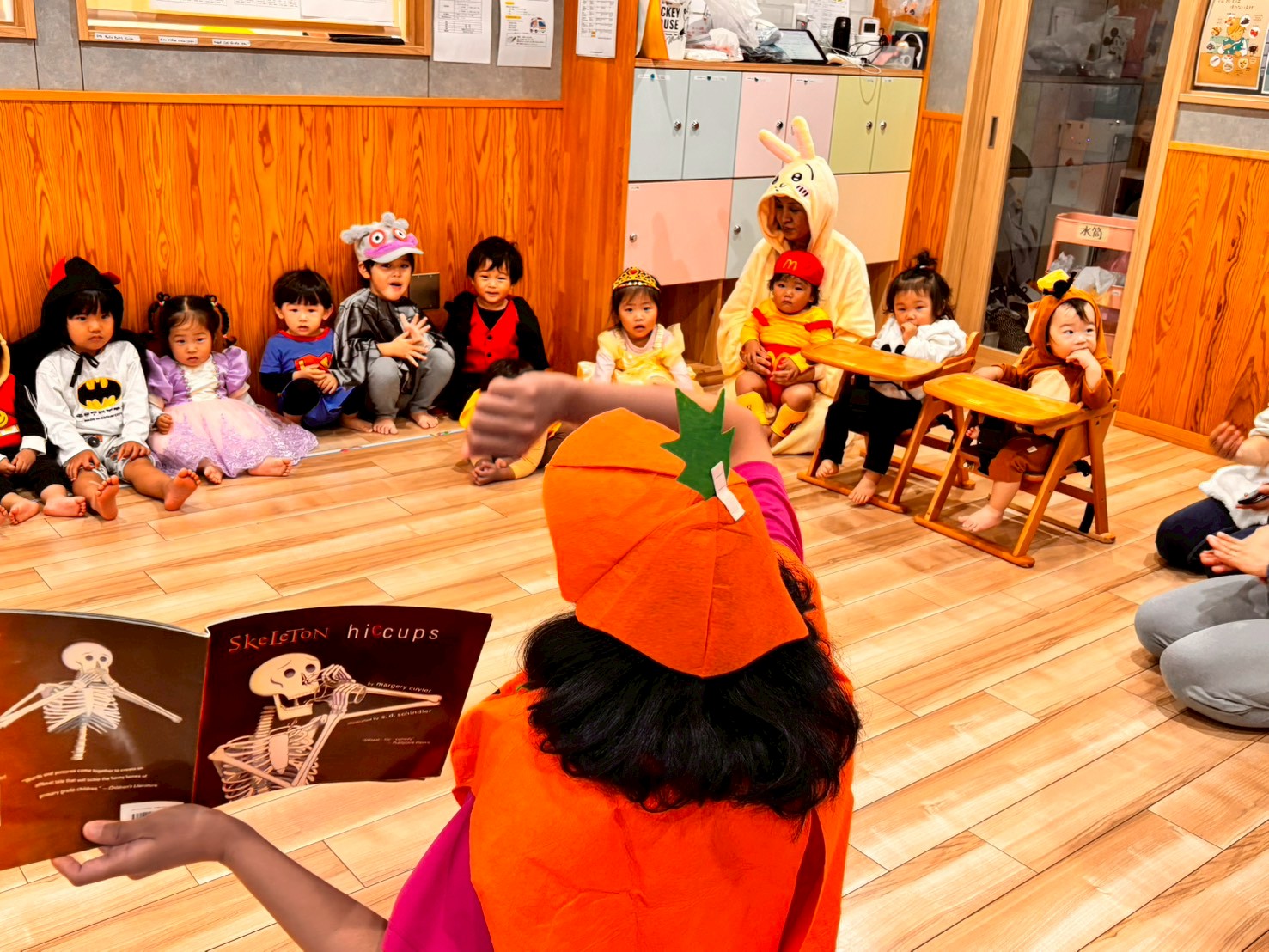 英語教室もあり、衣装に包まれた子どもたちが、ハロウィンに出てくる単語を言ってなりきってみたり、ジェスチャーゲームで子どもたちが当てたりして盛り上がりましたよ🎶
