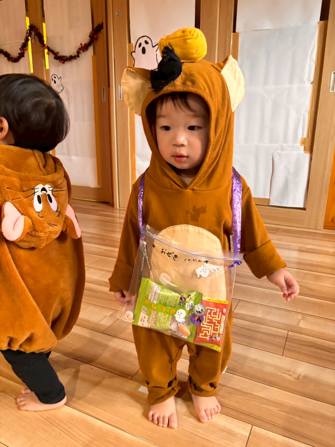 あいにくの天気☔️でパレードには行けませんでしたがお部屋の中で、お菓子すくいや、お菓子取り、おばけ👻に「trick or treat」と言ってタッチしてお菓子をもらったりたくさん楽しむ事が出来ましたよ💕