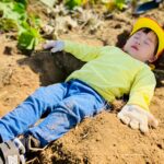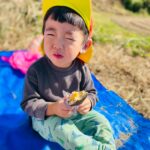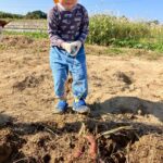 芋畑に着くと軍手を一生懸命つけて、スコップを手に芋掘りスタート🍠‼️