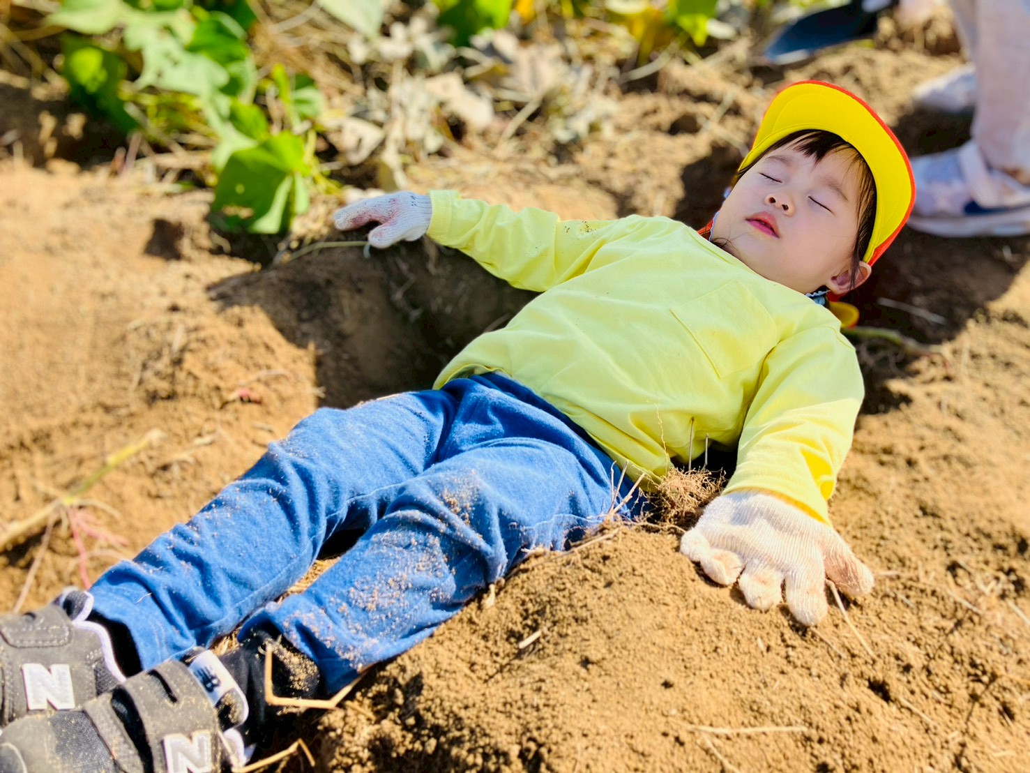芋掘りのあとは温かい土の上に寝転んだりカエルを発見したり🐸💡
