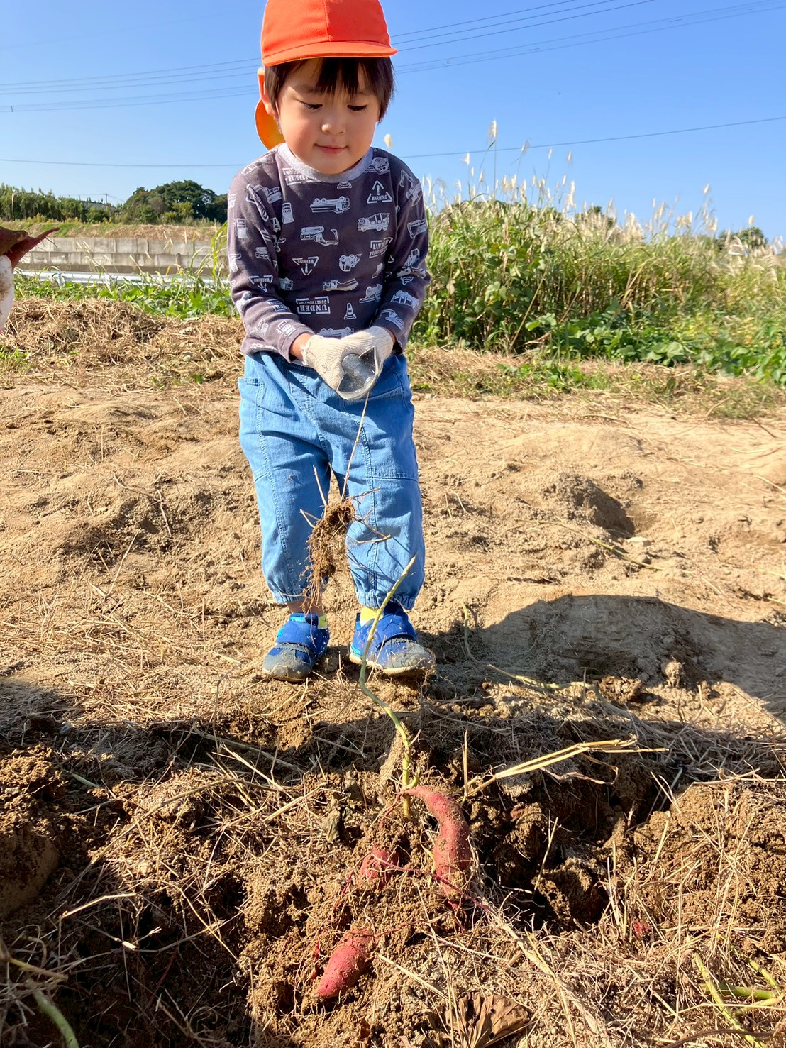 芋畑に着くと軍手を一生懸命つけて、スコップを手に芋掘りスタート🍠‼️