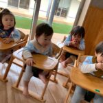 その後うさぎ🐰さんは数字塗り絵をしました。上手に塗って、いろんな絵に色づけできましたよ✏️こあら、きりんぐみさんは発表会の練習をしました🪿👑最後にはうさぎ組にお客さんになってもらって、緊張感をもちながら練習することができましたよ☺️