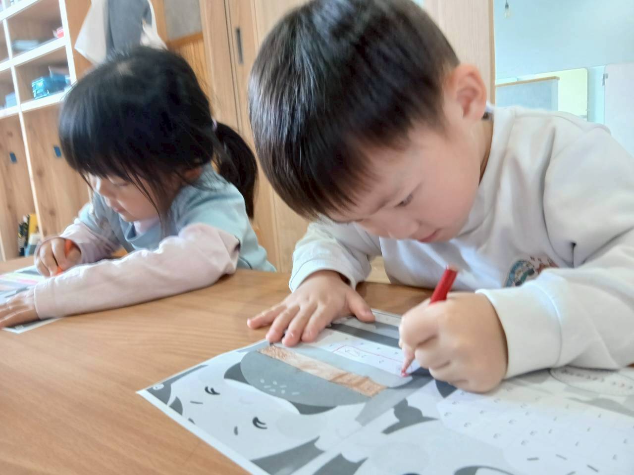 その後うさぎ🐰さんは数字塗り絵をしました。上手に塗って、いろんな絵に色づけできましたよ✏️こあら、きりんぐみさんは発表会の練習をしました🪿👑最後にはうさぎ組にお客さんになってもらって、緊張感をもちながら練習することができましたよ☺️