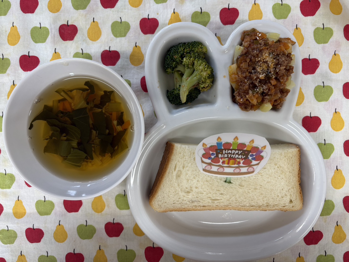 ピアノ無しでもしっかり暗譜してベルを叩けてました👏🏻✨ 発表会が楽しみですね【くりえいと園の今日の給食です】