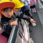 川の横を歩いていると大きな鯉が泳いでいて、みんなで「いたー!」と嬉しそうにじーっと観察していましたよ✨水分補給をしてからは、みんなでかけっこをして体を動かし、そのあとも奥まで進んでお散歩を楽しみました😊