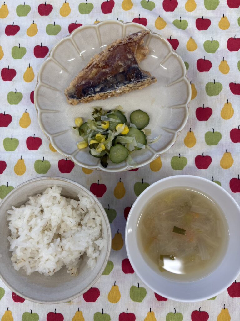 体調不良でお休みする子が増えてきました。咳😷をしている子はマスクをしたり手洗いなどをしっかりとしていき、予防に努めていきたいと思います☺️💖【くりえいと園の今日の給食です】