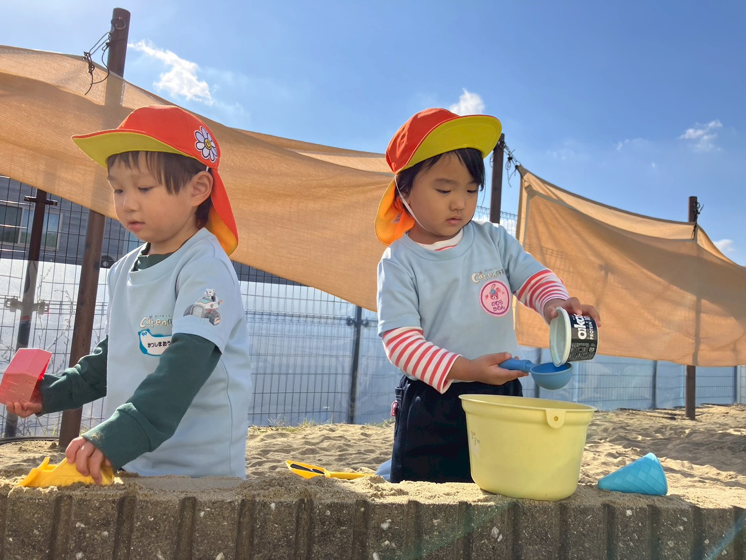 園庭でもたっぷり砂場遊びをして、給食を食べるのもとっても早かった子ども達でした☺️✨うさぎこあらきりん組🦒🐨🐰