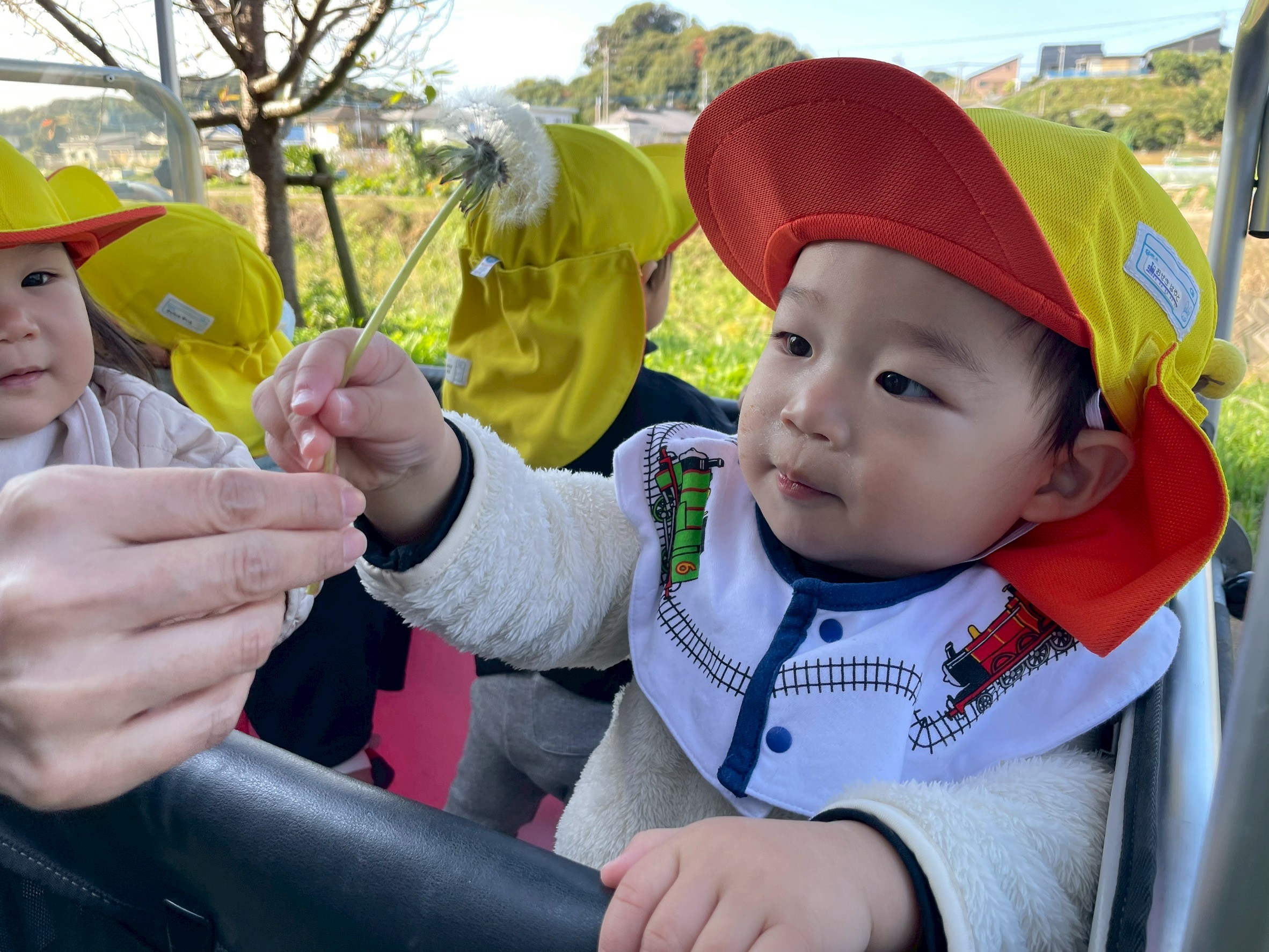 たんぽぽの綿毛を見つけて、また春にお花を見せてもらえるようにお祈りしたり、どんぐりを順番で観察しました❤️